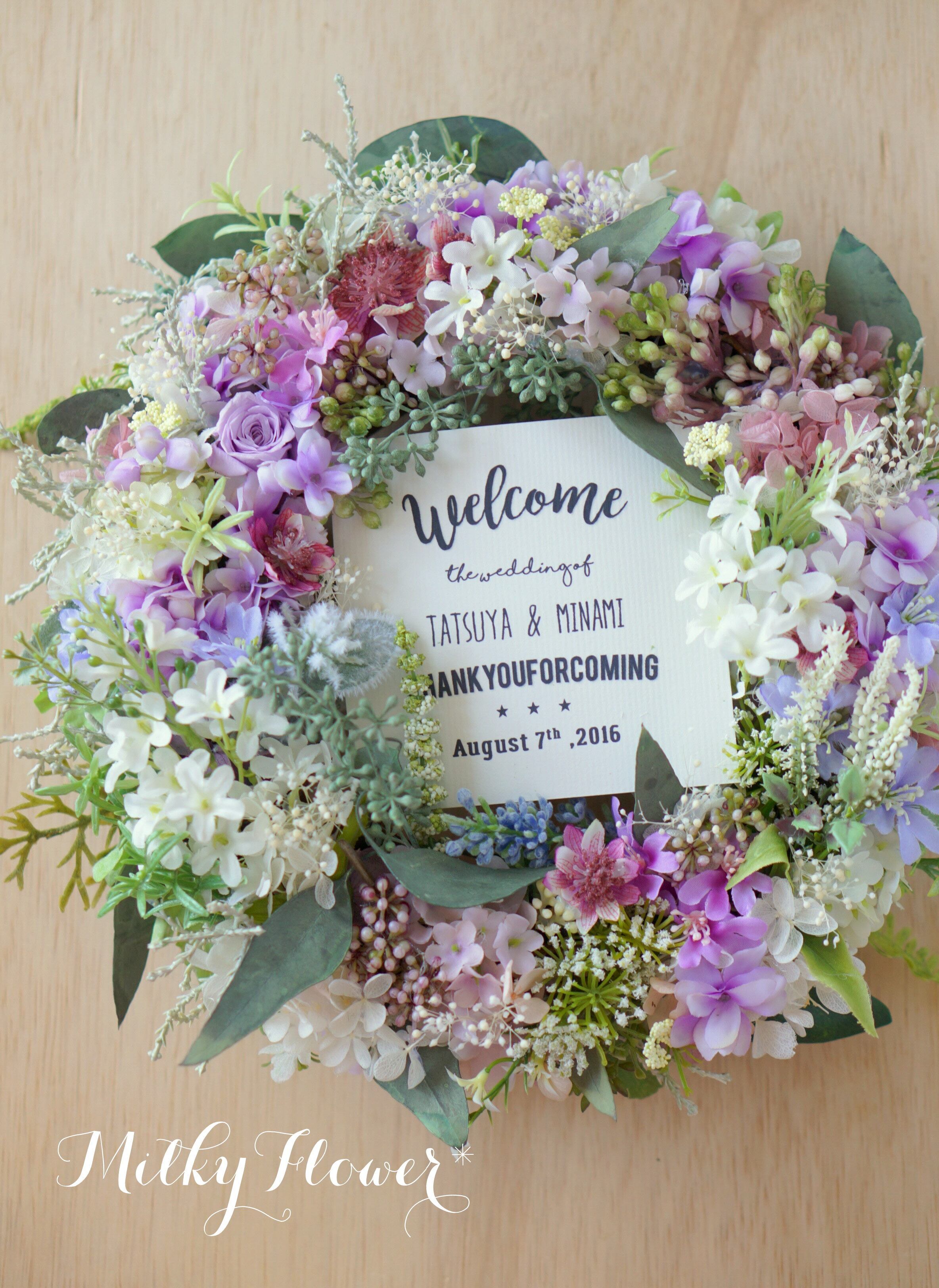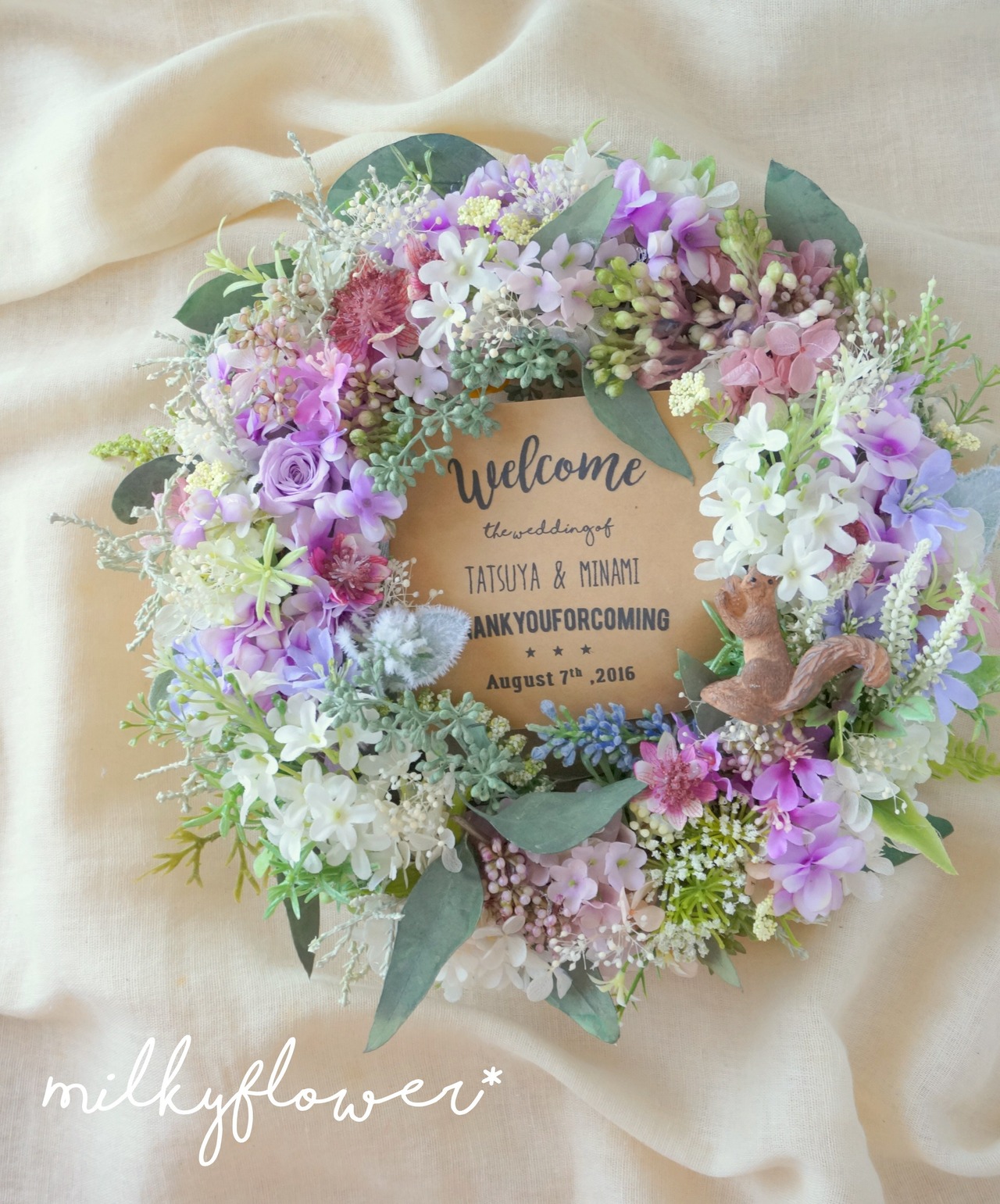 新郎新婦様のお名前と挙式日を記載しまして、お届けさせて頂きます♡
