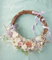 ナチュラルなあわくやわらかいMilkyカラーのお花を散りばめたリースブーケ*